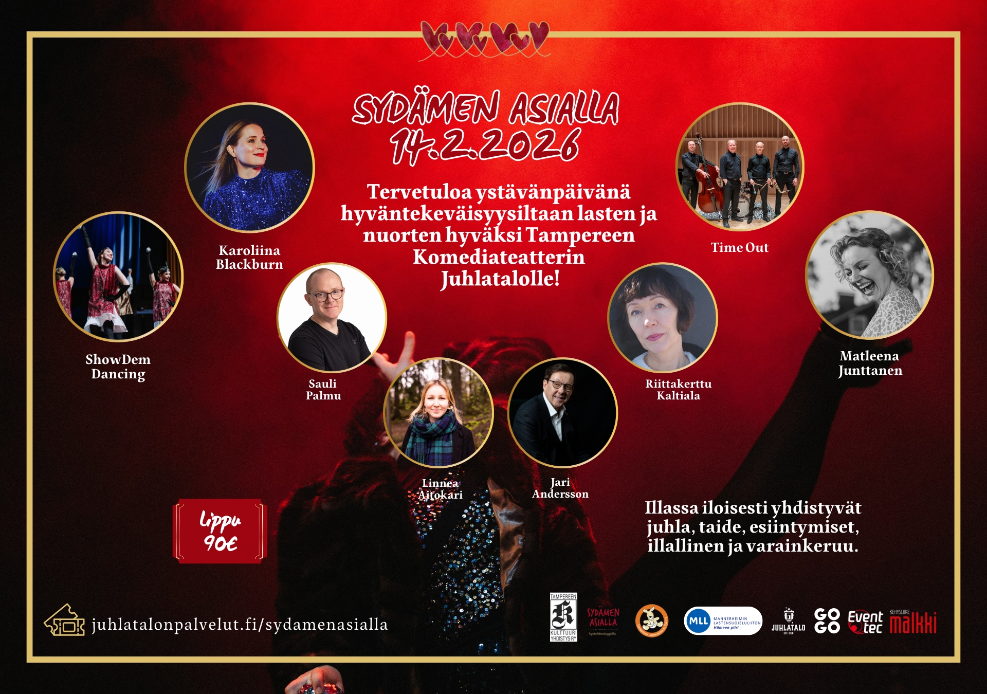 Sydämen asialla -ilta Tampereen Komediateatterin Juhlatalon salissa lauantaina 14.2.2026